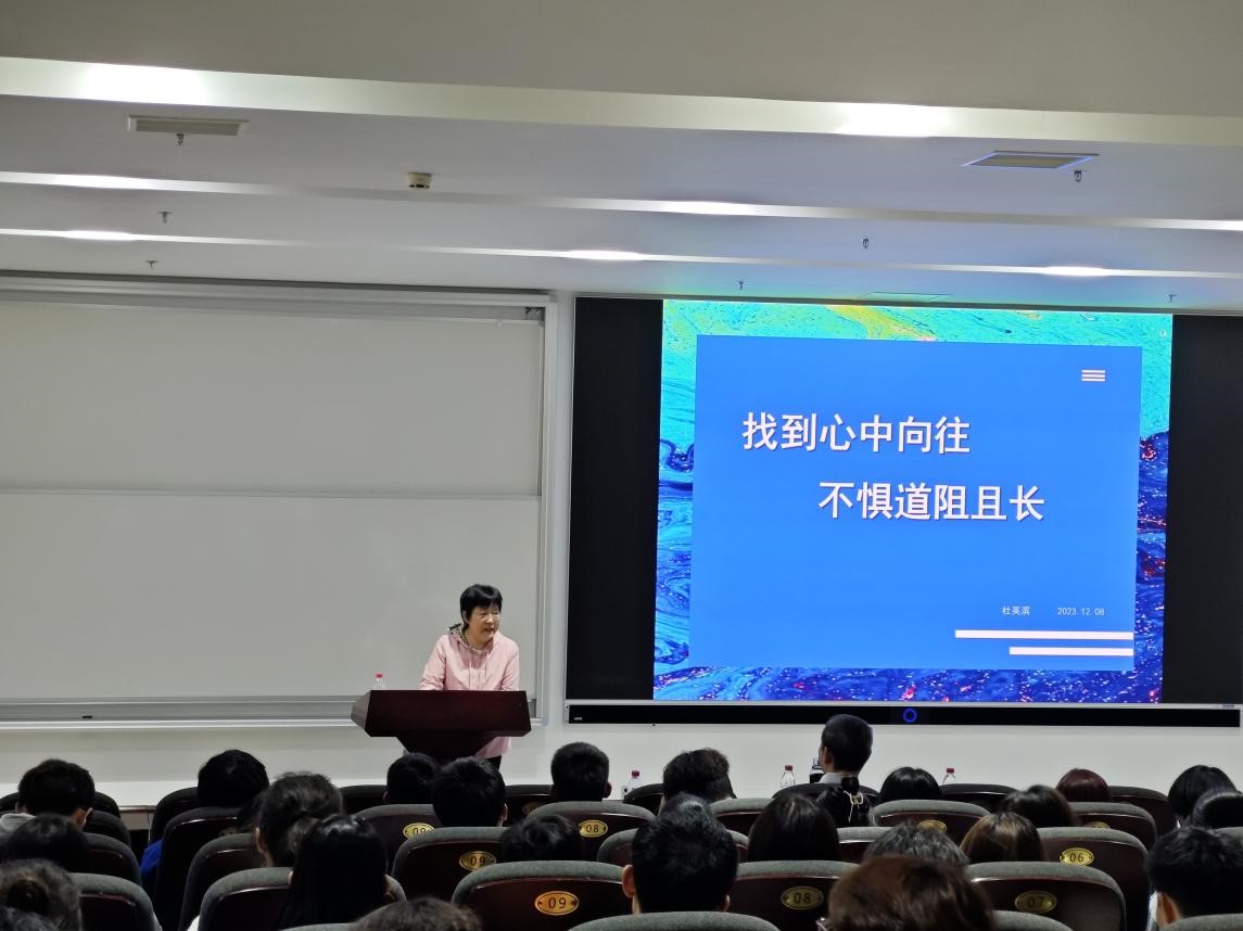 学院退休教师杜英滨为现场同学作“找到心中向往 不俱道阻且长”主题报告,她围绕学院同学们的思想特点、心理特征、价值判断、行为习惯等方面给予了亲切指导。