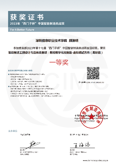 4、2023年“西门子杯”中国智能制造挑战赛全国总决赛——数控数字化双胞胎虚拟调试方向(高职组)二等奖;