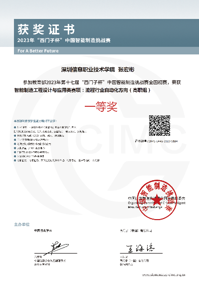 6、2023年“西门子杯”中国智能制造挑战赛全国初赛——流程行业自动化方向(高职组)一等奖;